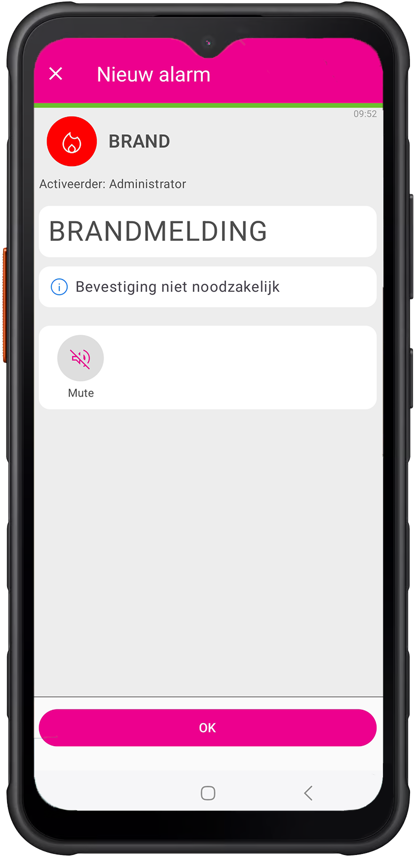 - Alternatieve signalering wanneer een gebruiker ten tijde van de brandmelding aan het telefoneren is; hierbij trilt het toestel en licht het scherm op, ter voorkoming van gehoorschade.